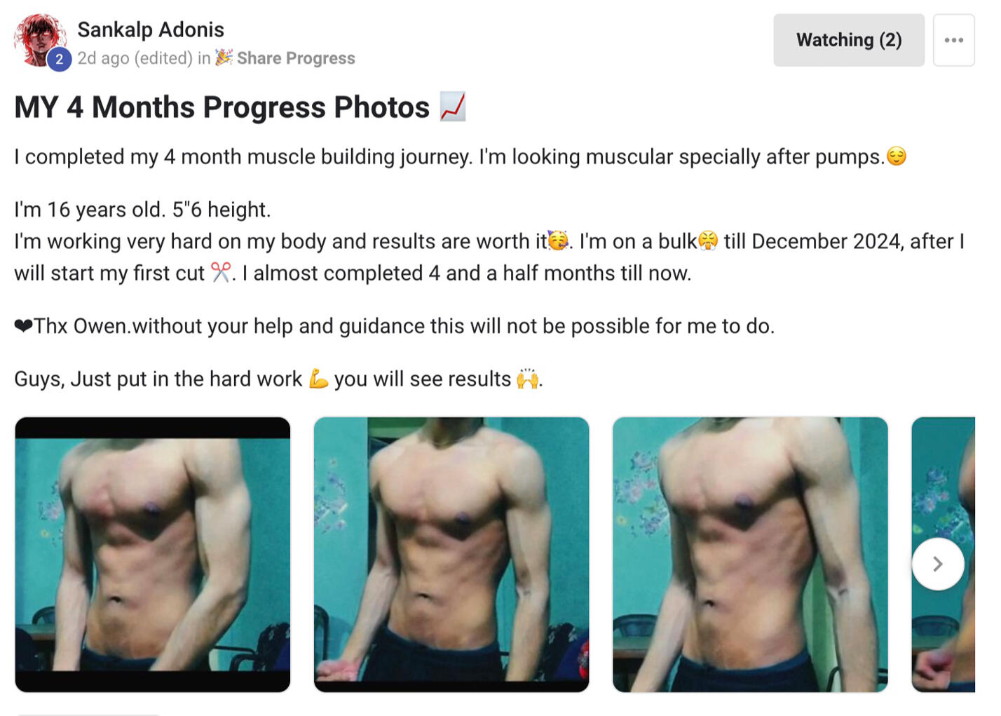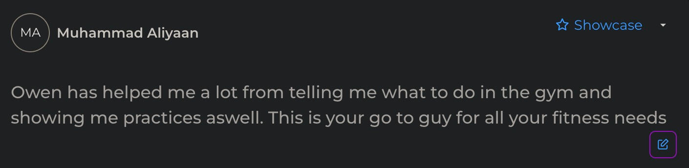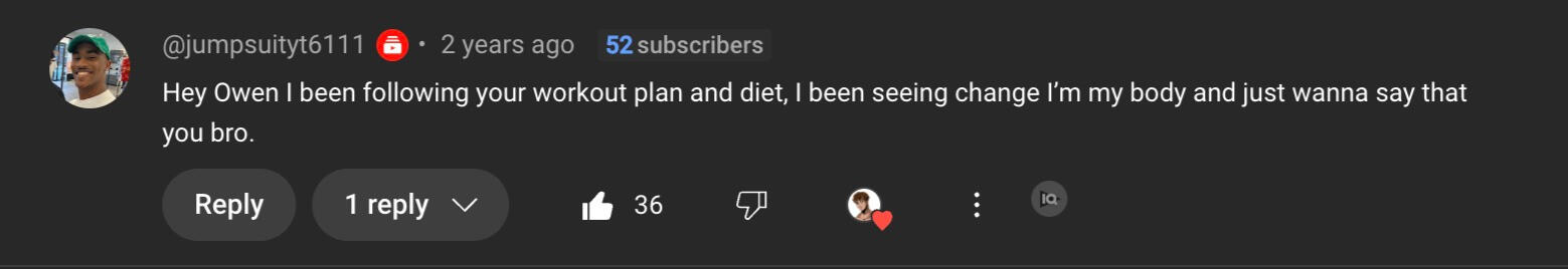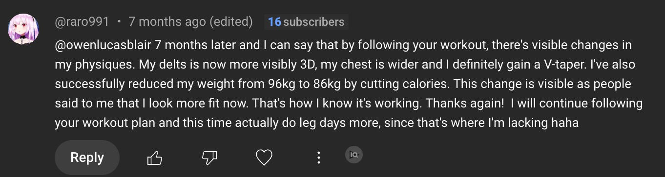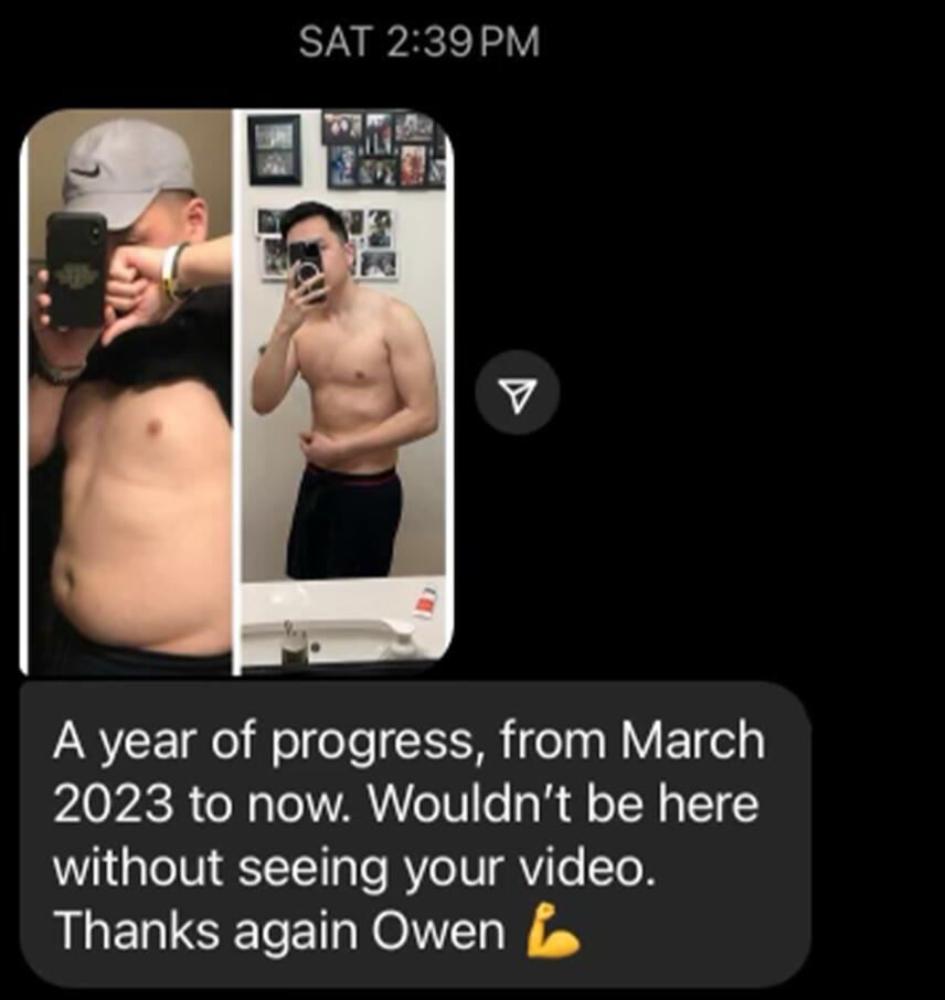 "Owen’s workout routine was game changing. I’ve followed it for 6 months, and the results are crazy. I had gym fear before, but now I’m more confident and better.”
