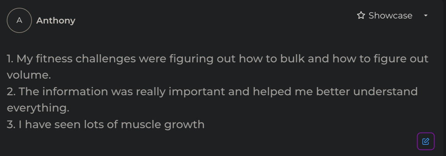 If you’re like I was, you’ve probably tried to cut, only to lose muscle instead of fat. Or maybe you’ve bulked up, only to pack on unwanted fat and still not see the definition you want. It’s frustrating, but here’s what I realized: Results take time, and they come from staying consistent with the right program.In Aesthetic Body Roadmap, we take out the guesswork. You’ll know exactly what to do every day, with a clear structure designed to get you results—no more hopping between different plans and losing progress.We focus on training intensity, hitting the key muscle groups with just the right amount of volume, and training to failure so your body has no choice but to adapt. This was the game-changer for me.Once I committed to a plan and stuck with it, the results followed. I built muscle, burned fat, and started to finally see the lean, muscular physique I had always wanted.