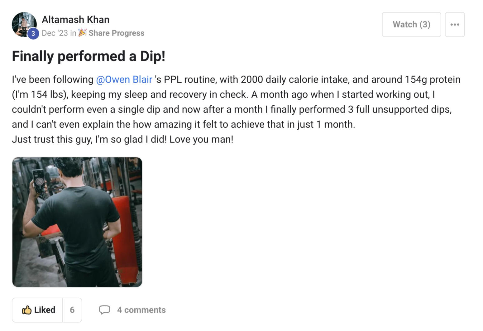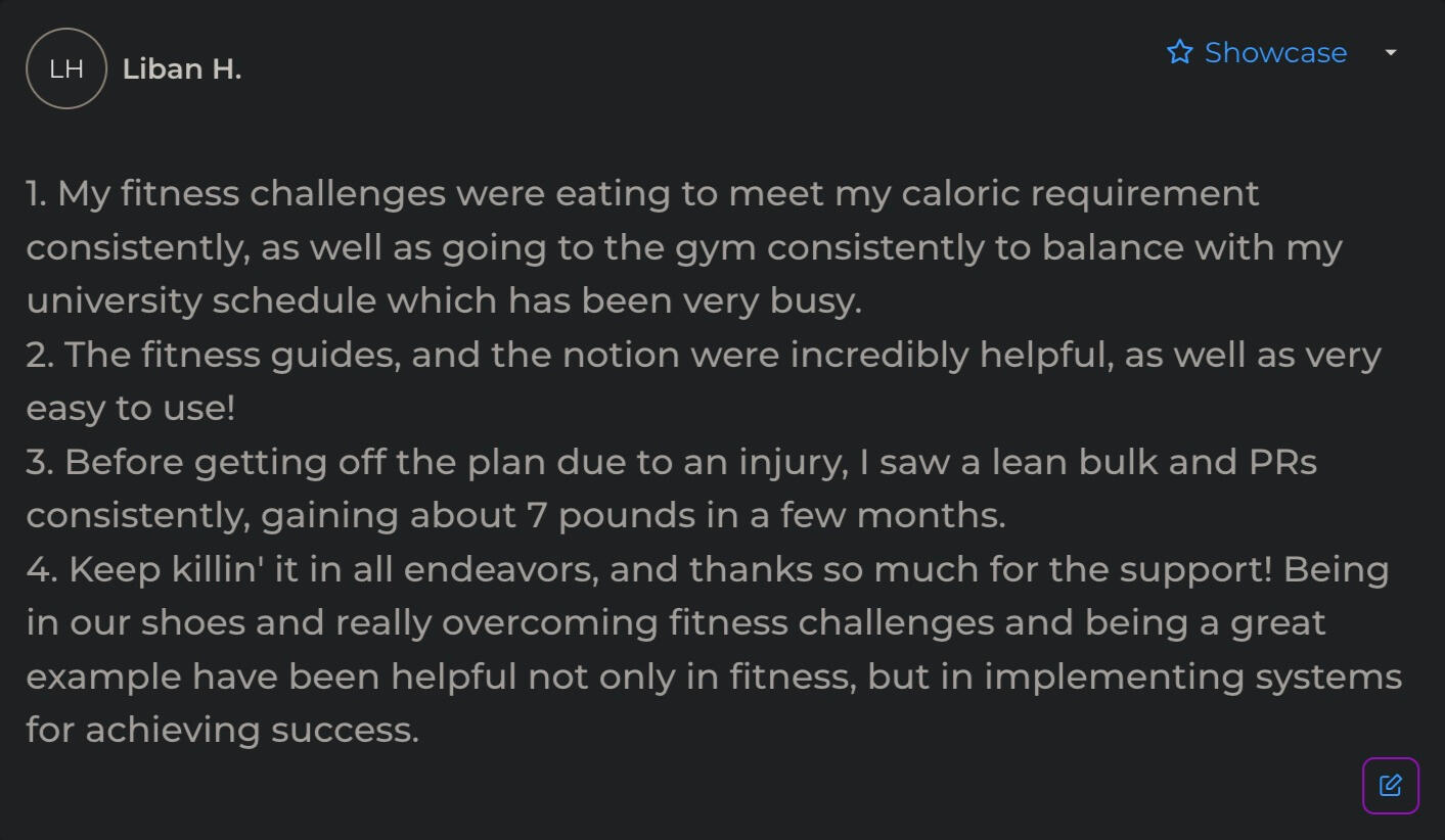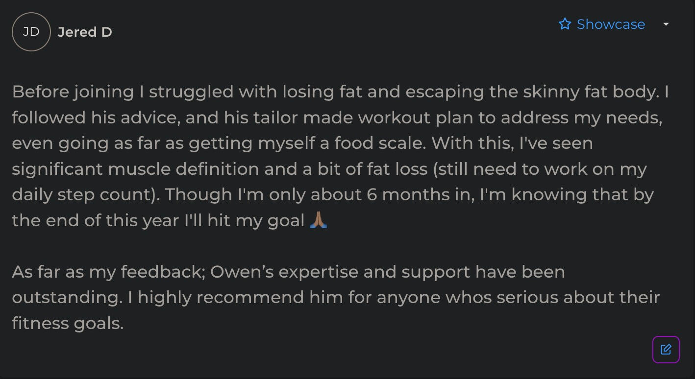"Owen’s workout routine was game changing. I’ve followed it for 6 months, and the results are crazy. I had gym fear before, but now I’m more confident and better.”